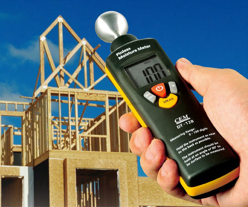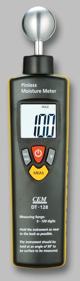 Bezinwazyjny miernik wilgotności DT-128 jest elektronicznym testerem zawilgocenia materiałów w którym proces pomiaru działa na zasadzie wykorzystania wysokiej częstotliwości. Przyrząd jest używany do bezinwazyjnego wyznaczenia zawilgocenia wszystkich rodzajów materiałów budowlanych, jak również do wykrywania rozprzestrzeniania się zawilgocenia w ścianach, stropach i podłogach. Jest szczególnie odpowiedni do wstępnego badania gotowości materiałów budowlanych do nakładania powłok poprzez wcześniejszy pomiar zawartości wilgoci (zawilgocenia).