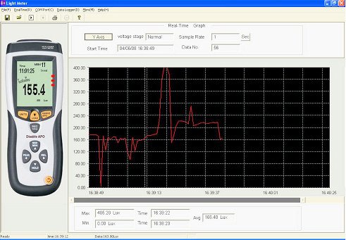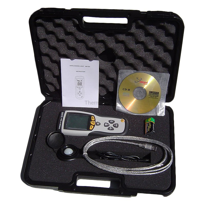 Profesjonalny miernik do precyzyjnych pomiarów natężenia oświetlenia. Pomiar natężenia oświetlenia może być przeprowadzany zakresie od 0 do 400 000 Lux. Wyniki przedstawiane są w postaci cyfrowej na wyświetlaczu LCD oraz graficznie na 40 segmentowym bargrafie. Pomiar w jednostkach Lux lub Fc. Datalogger umożliwia rejestrację w pamięci urządzenia 16 000 rekordów pomiarowych zawierających wyniki oraz datę i czas ich wykonania. Dane te mogą być wysłane do komputera klasy PC po wcześniejszym zainstalowaniu oprogramowania standartowo dostarczanego z przyrządem. Program umożliwia również transmisję, obserwację i archiwizację danych pomiarowych bezpośrednio na komputerze w czasie rzeczywistym. Miernik zasilany jest z 9V baterii alkalicznej. Posiada funkcję automatycznego odcięcia zasilania po 20 min. bezczynności oraz sygnalizację rozładowania baterii. Po de-aktywacji funkcji oszczędności baterii luksomierz może pracować w trybie ciągłym. Urządzenie przystosowane jest do zamontowania na statywie.
