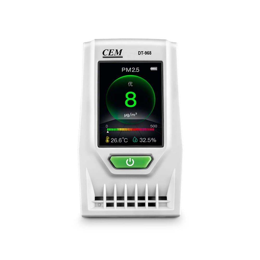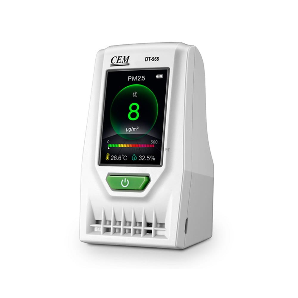 DT-968 pozwala szybko określić poziom zanieczyszczenia zarówno w pomieszczeniu, jak i na zewnątrz. Znajdzie zastosowanie w biurach, placówkach medycznych i edukacyjnych oraz wszelkich miejscach, w których przebywają ludzie. Sprawdzi się do ciągłego lub okresowego monitoringu jakości powietrza poprzez badanie stężenia pyłów zawieszonych o rozmiarach PM2.5 i PM10.