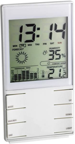 Funkcjonalność: Dzień tygodnia , Prognoza pogody , Historia dla temperatury, wilgotności lub ciśnienia powietrza , Wskaźnik komfortu , Temperatura pokojowa , Wilgotność w pomieszczeniu