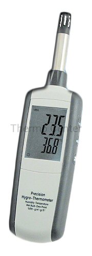 Profesjonalny miernik do pomiarów bezwzględnej i względnej wilgotności, aktualnej temperatury z dodatkową funkcją obliczania punktu rosy oraz temperatury parowania (temperatury termometru wilgotnego - psychrometr). Miernik posiada precyzyjne czujniki umożliwiające przeprowadzenie szybkich i dokładnych pomiarów. Wyniki wyświetlane są na dwupolowym wyświetlaczu LCD. Użytkownik ma możliwość wyboru jednostek pomiarowych oraz wartości wyświetlanych na panelu LCD. Urządzenie może pracować w trybie pomiaru bieżących wartości oraz odczytu wartości minimalnych i maksymalnych (funkcja MIN/MAX). Funkcja HOLD umożliwia zatrzymanie aktualnych wskazań. Podświetlany panel LCD ułatwia przeprowadzenie pomiarów przy niskim natężeniu oświetlenia np. w ciemnych pomieszczeniach.