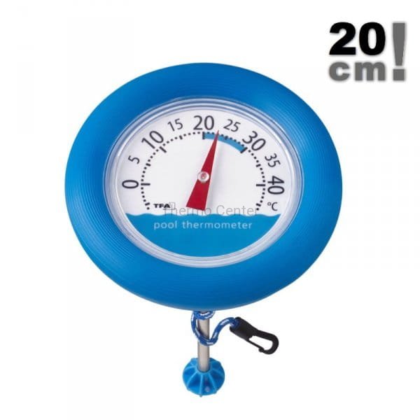 Termometr basenowy TFA 40.2007 mechaniczny pływający, służy do pomiaru temperatury wody w basenie / stawie / sadzawce na głębokości około 150 mm. Termometr unosi się na wodzie (pływa) - w zestawie znajduje się sznurek, za pomocą którego możliwe jest przywiązanie czujnika do brzegu.