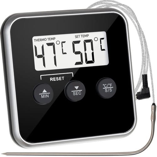 - SZEROKI ZAKRES ZASTOSOWAŃ - termometr nadaje się do wielu pomiarów. To idealne narzędzie do mierzenia temperatury mięsa, cieczy, oleju czy też produktów spożywczych podczas ich przygotowania. Zakres temperatur od 0 do 250 st.C sprawi, że sprawdzi się zarówno w piekarniku, grillu, wędzarni jak i lodówce.