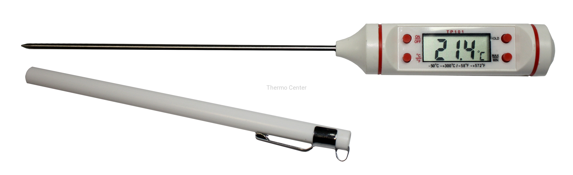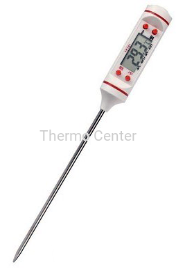 Termometr szpikulcowy z sondą ze stali nierdzewnej.